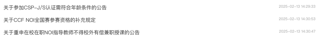 2月13日,中国计算机学会(CCF)发布数条公告。其中,中国计算机学会在《关于参加CSP-J/S认证需符合年龄条件的公告》中,对CSP-J/S认证作出的年龄限定:规定报名参加CSP-J/S、NOI相关竞赛,需满12周岁。