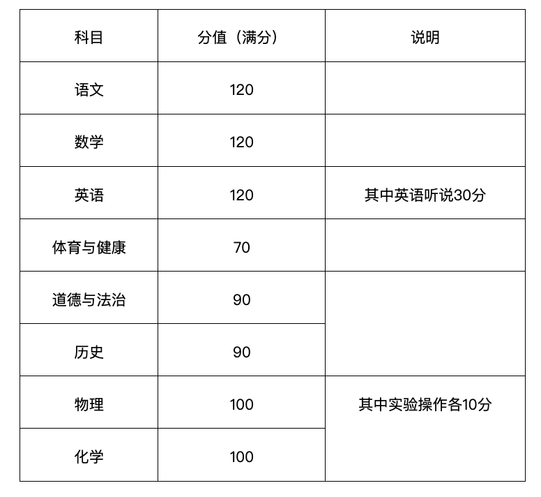 考试方式上,语文、数学、道德与法治、历史和地理5个科目实行闭卷笔试;英语实行闭卷笔试和听说能力考试;物理、化学、生物3个科目实行闭卷笔试和实验操作考试。