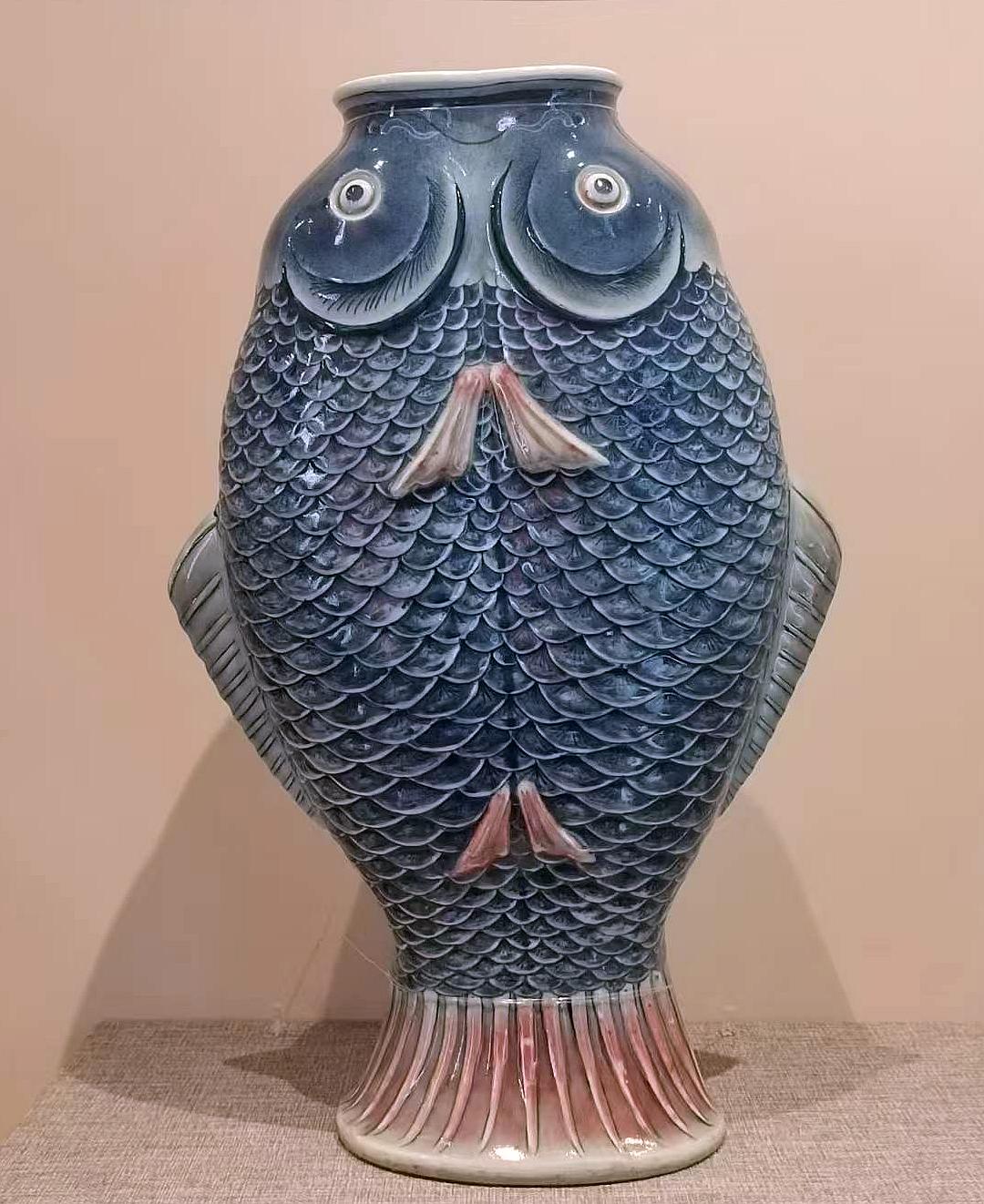 在广东民间工艺博物馆(陈家祠)“愿新年 胜旧年——广东民间工艺博物馆贺岁特展”中,鱼主题的文物就不少,比如清康熙时期的“在川知乐”款青花五彩鱼藻纹瓷碟,又如杨铨先生捐赠的清晚期青花釉里红鱼形瓷瓶,都透着新春的吉祥喜庆。在广州艺术博物院的“千里天然微笑处——纪念陈树人诞辰一百四十周年展”中,《跃鲤图》中,水墨勾勒的鲤鱼高高跃起,生机勃勃。