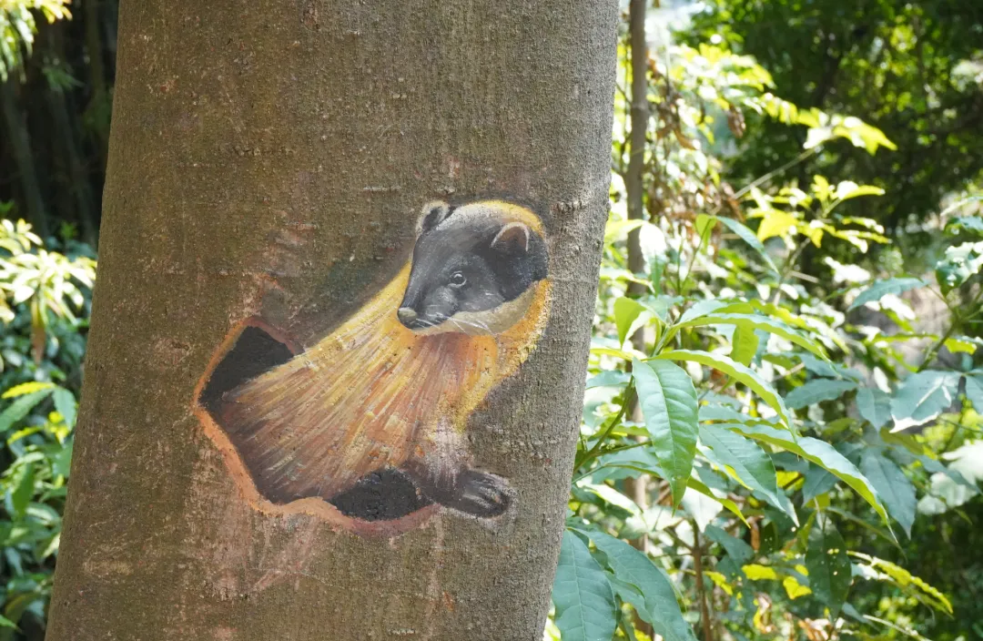 黄麻村环线环境清幽、小众休闲,沿途绿树成荫,溪流清澈见底,步道铺设得平整舒适。这条路线全程轻松愉快,游客可以沿小溪嬉戏玩水,穿梭于竹林间探索野趣小径,漫步在茂密的森林中,还能欣赏到各种动物主题的涂鸦艺术。