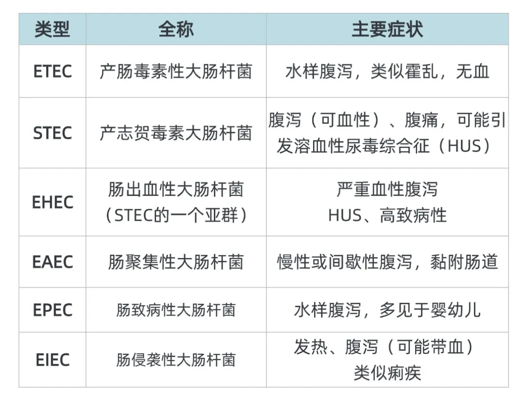 根据致病机制的不同,致病性大肠杆菌主要分为以下几类: