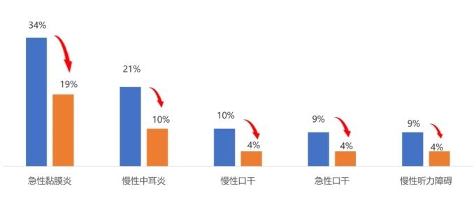 研究证实,对比传统放疗按照化疗前的肿瘤方位进行照射,新的方案仅照射化疗后的肿瘤范围,并没有增加肿瘤复发,3年局部区域无复发生存率达91.5%,与传统疗法持平。与此同时,严重放射性口腔黏膜炎降低4成,晚期严重中耳炎发生率锐减5成,口干症状改善6成。患者的整体健康状态、体力状态、情绪功能得到显著改善,口干及唾液黏稠症状减轻。