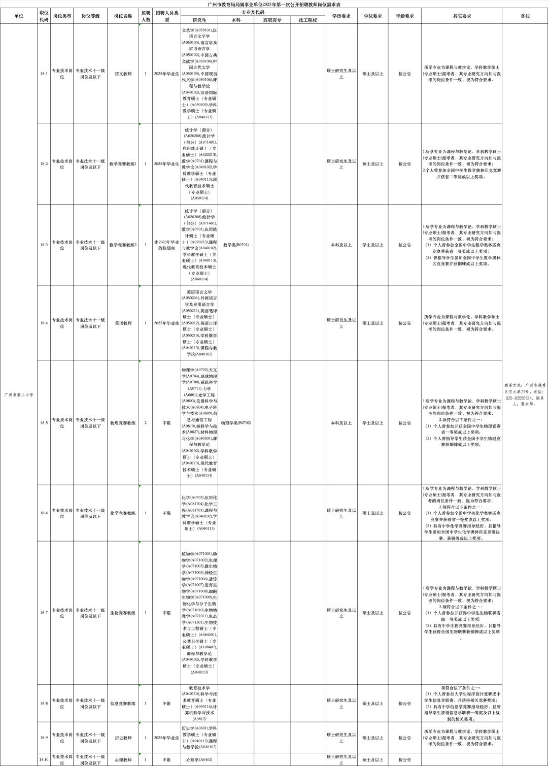 广州市第二中学也将招聘竞赛教练,涉及数学、物理、化学、生物、信息等学科竞赛。