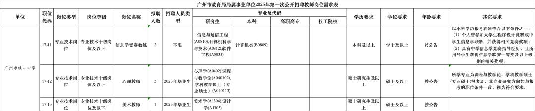 公告显示,广州市铁一中学、广州市第二中学将招聘竞赛教练。