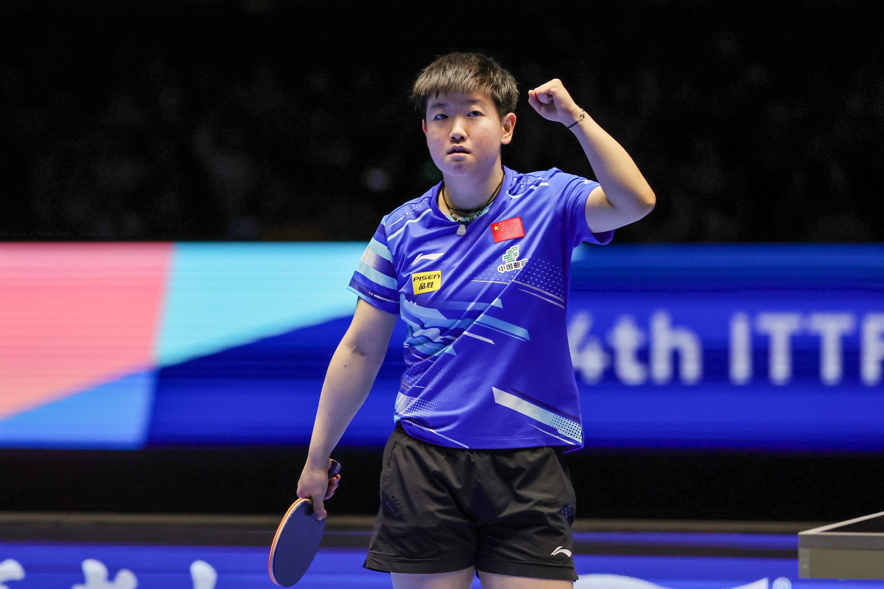 在上半区女单半决赛中,孙颖莎直落4局淘汰陈幸同,每局的比分是11比7、11比7、11比5和14比12。她在决赛中的对手将是队友王曼昱、蒯曼之间的胜者。孙颖莎表示,还剩下一场比赛,她将在决赛全力以赴,拼尽全力。