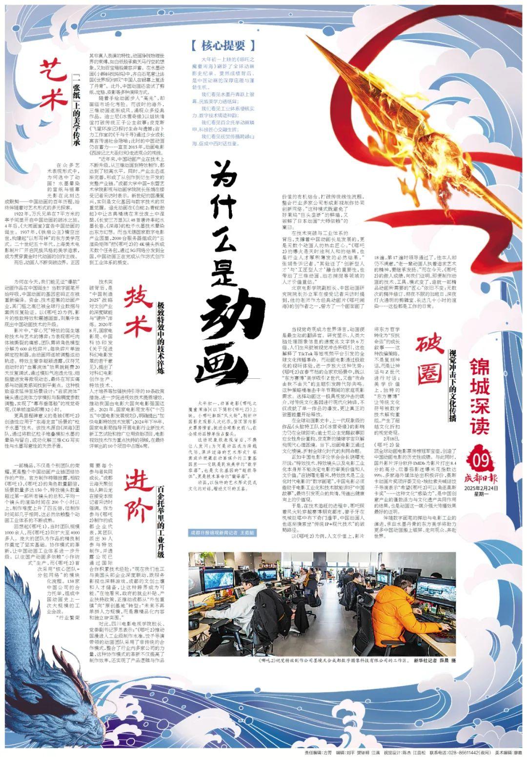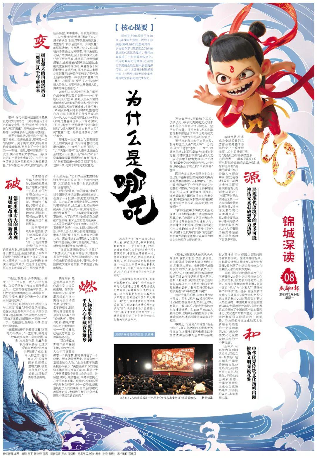 这部诞生于成都的“现象级”作品为何能以黑马之姿强势突围,让世界听见中国故事的澎湃心跳?成都日报今日推出《哪吒2》深度观察报道,以“五个为什么”为脉络,探寻这部动画电影票房奇迹背后的文化密码、产业逻辑与城市基因。