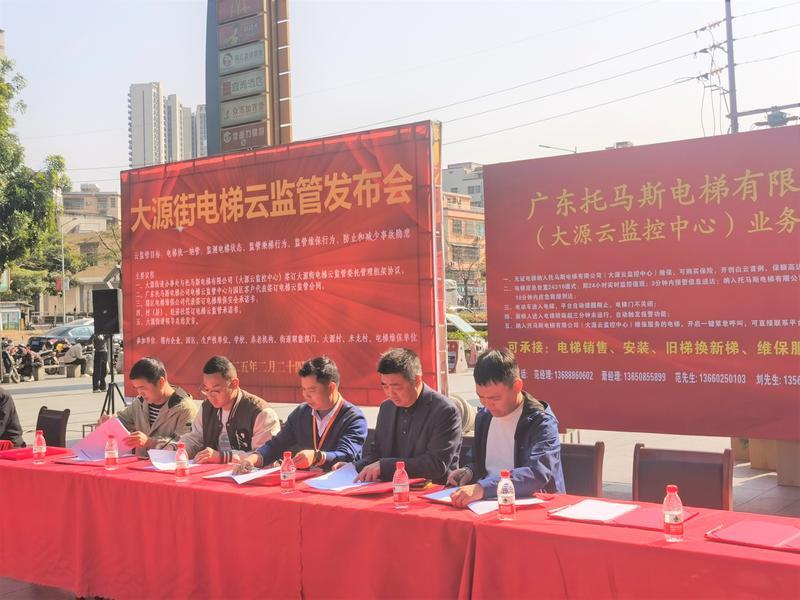 信息时报讯(记者 何家贵 通讯员 大源宣)2月24日,广州市白云区大源街道办事处召开电梯云监管发布会,与广东托马斯电梯公司(大源云监控中心)签订发布“电梯云监管”委托服务协议,广东托马斯电梯公司与广州市杰至电梯有限公司等电梯维保公司签订战略合作协议,村集体负责人现场签订电梯云监管承诺书,包括园区企业在内的近二十户业主代表与托马斯公司签订电梯云监管合同。这标志着大源街城中村电梯云监管专项治理行动正式启动。