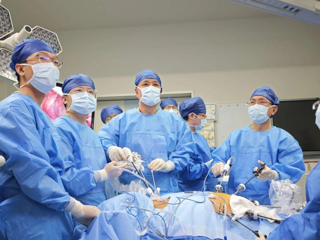 经过与家属充分沟通,团队决定采用创伤更小、恢复更快的“纵隔镜+腹腔镜”双镜联合微创术,只需要在颈部和腹部各切一个小切口,然后用微创的方式,上下“会师”,将食管、胃微创切除。