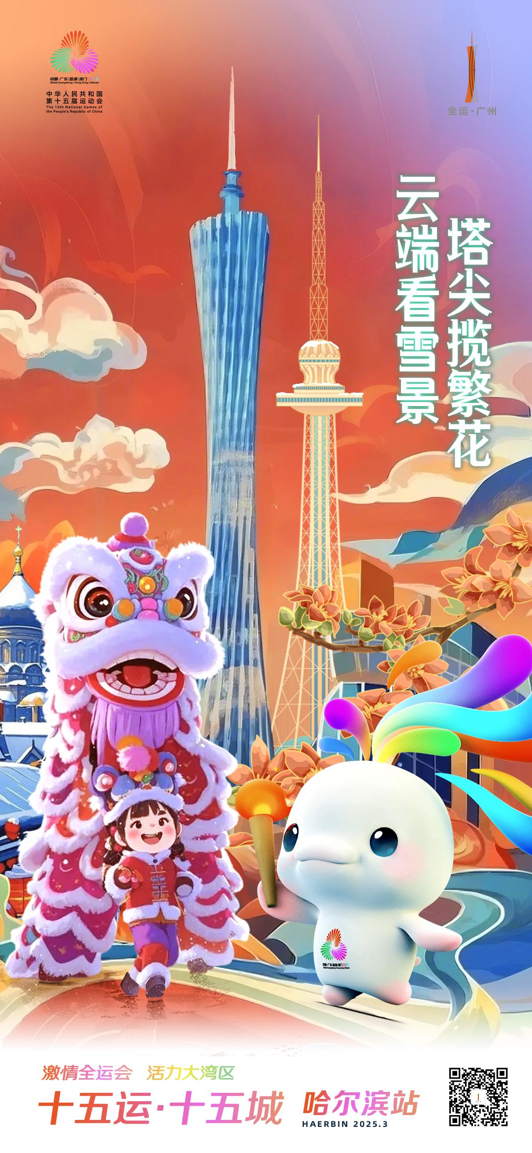 3月1日,哈尔滨中央大街、广州北京路、广州融创雪世界南北联动,共迎十五运会