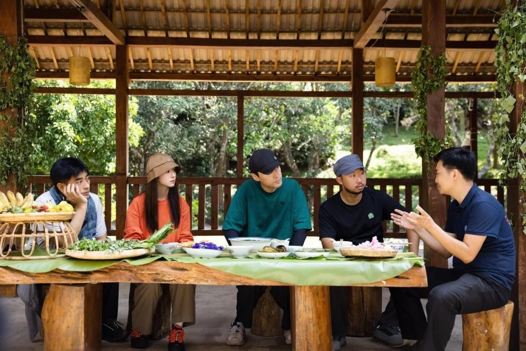中国科学院西双版纳热带植物园里有一处“野菜园”——野生食用植物园,种植了许多版纳特有的野菜,胡歌一行人跟随傣族讲解员在野菜园里“寻宝”。名字十分动听的羽叶金合欢,拿起来一闻就让陈龙戴上“痛苦面具”,讲解员表示,这种野菜当地人又叫它“臭菜”,“闻着臭,吃着香”,是傣族待客的招牌菜之一。此外,象牙形状的大花田菁,去掉花托后可以清炒……版纳居民世代生活在雨林中,探索出属于自己的生活智慧,看似不能食用的植物,经过当地人的引种、驯化,成为餐桌上的美味佳肴。环保行动者们了解野菜知识后,实地品尝了一顿“野菜宴”。