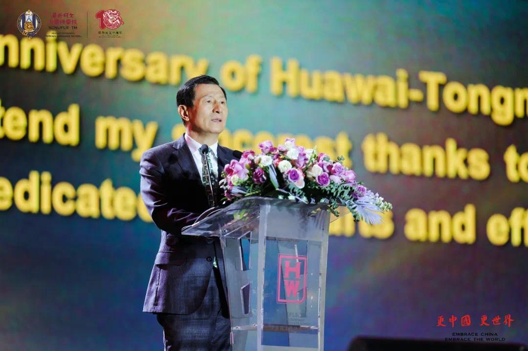 华外联合创始人、同文教育研究院院长韩利庆博士在致辞中回顾了学校创办的初心和十年的奋斗历程,对学校未来的发展提出了殷切期望。他强调学校将继续坚持“更中国 更世界”的教育理念,深化教育改革创新,为学生提供更优质的教育,培养更多具有社会责任感和创新能力的人才。