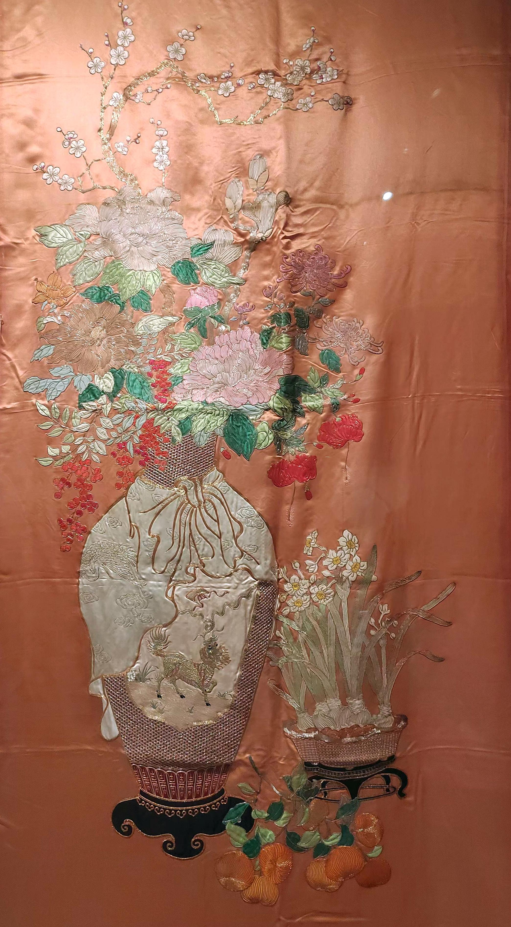 大家在新春时节爱栽培的水仙,象征着辞旧迎新;许多文物中能见到的柿子,代表“事事如意”;花瓶中的四季花卉,常寄托着“四季平安”的期待;石榴象征“多子”;佛手代表“多福”;一些大叶花卉代表“大业有成”……普通人的欢欣与快乐,在这些承载着时光印记的文物上,静静地流淌。