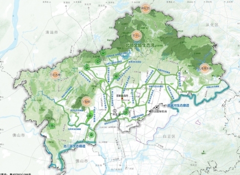 更绿色,高起点建设美丽中国、绿色低碳发展示范。花都建设全域公园城市,重点保护北部王子山生态屏障,加强6个自然保护地维育;加强巴江河、流溪河2大水源涵养保护,构建23条联通山水、贯穿城区的组团生态廊道,建设一批生态公园、城市公园、社区公园、口袋公园。推动建设花都城市中轴线,重点塑造环花都湖、环秀全湖2个城绿共融的城央客厅,积极打造“绿美中国示范”。城区南部以花都湖国家湿地公园为核心,结合沿岸古村落、工业遗产等存量建筑群落的活化利用,布局具有形象特色的滨水公共服务设施,形成城绿共融、古今交融的水岸风貌。城区北部以秀全湖为核心,结合周边低丘起伏山体的独特地势,打造圈层式环湖景观系统,打造绿色、活力、共享的生态型社区风貌。