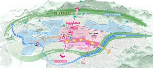 面向2035,花都锚定“国际性综合交通枢纽重要门户、世界级航空都会区、国家城乡融合发展示范区、北部增长极重要承载区”发展定位,围绕“国际商贸中心重要承载区、全国先进制造业基地重要承载区、大湾区国际开放新平台、国际级旅游目的地重要承载区”核心功能,推动从“交通枢纽”向“经济枢纽”“开放枢纽”迈进。