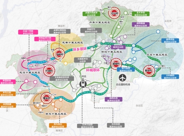 围绕空铁综合交通枢纽做大做强花都区枢纽经济、流量经济,构建全区“一区一城一港一湾”空间结构。