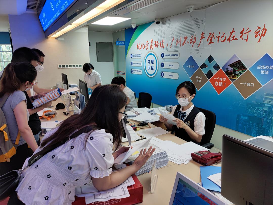 海珠区在前端咨询环节高效导办,党员先锋岗导办员现场指引程先生使用“广州市不动产登记网上申请系统”完成材料申报。在中端受理环节远程核验,通过视频互动方式远程指导身处异地的姑妈使用“粤省事”小程序依托人脸识别、电子签名等技术完成身份核验。在后端审核环节即时审批,买卖双方在线提交申请材料后,运用“互联网+不动产登记”系统即时受理,通过信息共享核验、线上税费缴纳、电子证照签发等数字化手段,在核验原件后60分钟内完成不动产转移登记及发证。