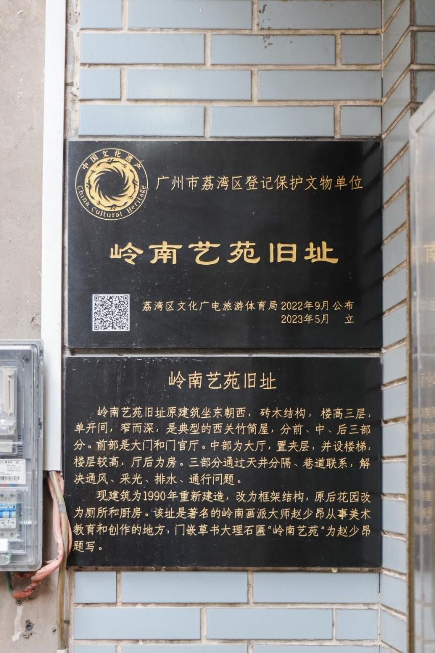 1930年,赵少昂在广州创立岭南艺苑,传艺授徒,此后,岭南艺苑跟随赵少昂的居所而变,开到大江南北。抗日战争胜利后,赵少昂回到广州,在湛露直街24号的竹筒楼亲笔题书“岭南艺苑”四字,居住、授课,直至1948年移居香港。1985年,广州荔湾区房管局将此处房屋管业权发还,1990年,根据赵少昂学生、女婿转达的修缮意见,旧居被重建,改为框架结构,2022年9月,作为岭南艺苑旧址被公布为荔湾区文保单位。