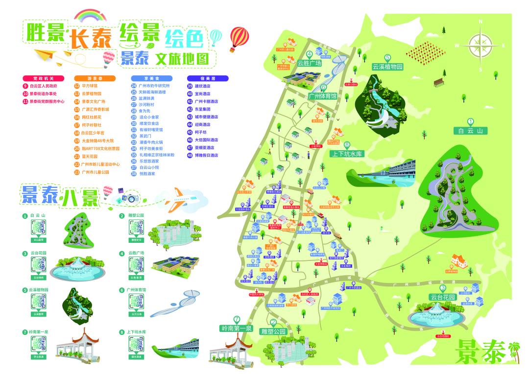 活动现场,景泰文旅地图、景泰八景文旅路线正式亮相。岭南第一泉、雕塑公园、云台花园、白云山、云萝植物园、云熙植物园、广州市奶牛研究所、广州体育馆……记者看到,景泰文旅地图上不仅标注了景泰八景,还网罗了天仙阁、有缘轩啫煲馆、柯子坊美食街等景泰辖区吃喝玩乐等旅游资源。市民游客一图在手,便可轻松玩转景泰。