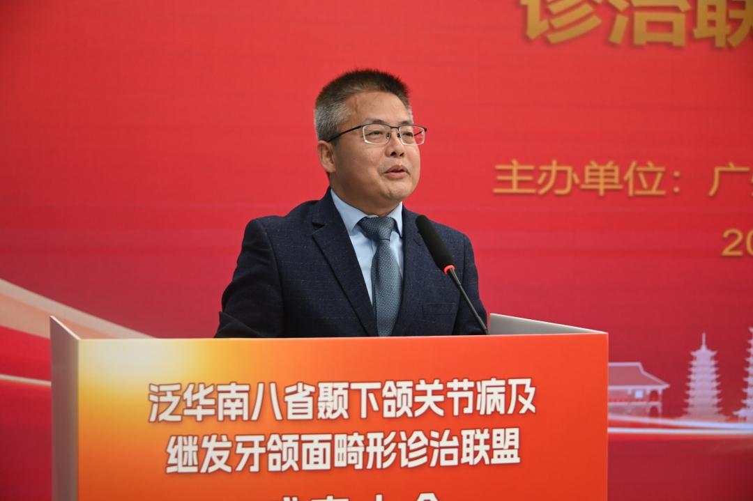 广州市卫生健康委员会副主任李铁钢指出,随着人民群众生活品质的持续提升,人们对口腔健康的重视程度与需求标准亦日益提高,口腔健康成为衡量生活质量不可或缺的一环。成立泛华南八省颞下颌关节病及继发牙颌面畸形诊治联盟,是响应健康中国战略的重要实践,是破解颞下颌关节病诊疗难题的关键举措,更是推动区域医疗协同发展的创新探索。他表示,希望广州医科大学附属口腔医院以联盟成立为契机,联合高水平医疗机构,以“规范诊疗”筑基石,打造标准化协作网络,以“技术攻坚”强引擎,激活创新发展动能,以“服务惠民”践初心,构建有温度的健康生态,为华南地区口腔健康事业高质量发展注入澎湃动力!广东省卫生健康委员会医政处副处长陈永嘉表示,广州医科大学附属口腔医院牵头成立泛华南八省颞下颌关节病及继发牙颌面畸形诊治联盟,充分展现了广州医科大学附属口腔医院作为公立医院的责任担当。会上,他提出了三点期望:一是希望大家能够携手将本联盟构建为区域内知识共享与技术交流的平台,全面提升华南八省颞下颌关节病及继发牙颌面畸形整体的诊疗水平;二是希望通过联盟的力量,建立起一套高效、顺畅的分级诊疗的合作机制,以促进医疗资源的合理配置与利用;三是期待能够整合联盟内部专家的优势资源,积极参与行业标准制定和政策咨询,为政府制定政策提供专业支持和循证依据。