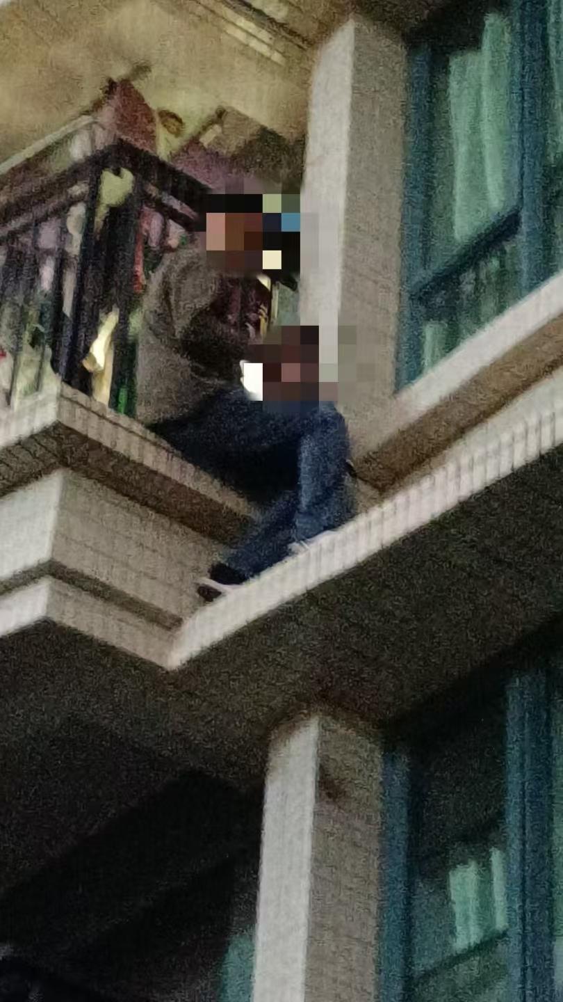与此同时,一名有攀岩经验的男居民自告奋勇加入了救援。他身手非常敏捷,很快就从1楼攀爬至3楼。到达孩子身旁后,他用手和身体护着小女孩,实施贴身保护,不仅给孩子身心带来大力支持,更为救援行动提供了重要助力。
