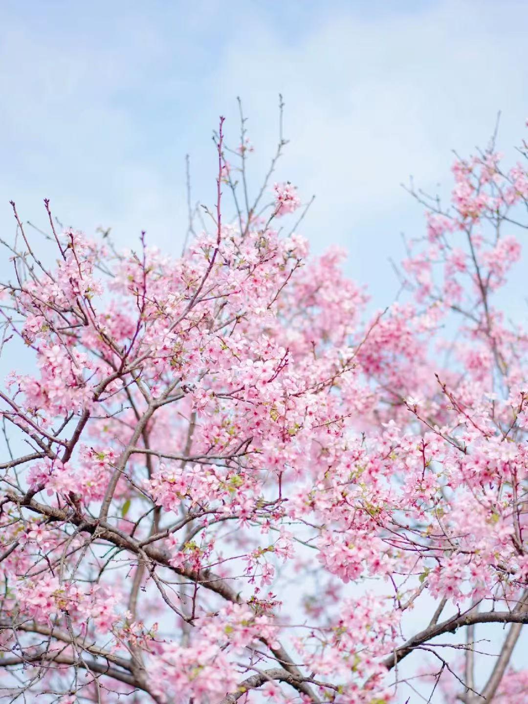 在海珠湿地二期,10亩的樱花林将在3月中下旬迎来盛花期。这里的樱花以广州樱为主,盛花时期,满树樱花在点点翠绿中晕染开层层绯红 。樱花的花瓣柔软而轻薄,呈淡淡的粉红色,花蕊金黄,在阳光的照耀下,闪烁着迷人的光芒 。