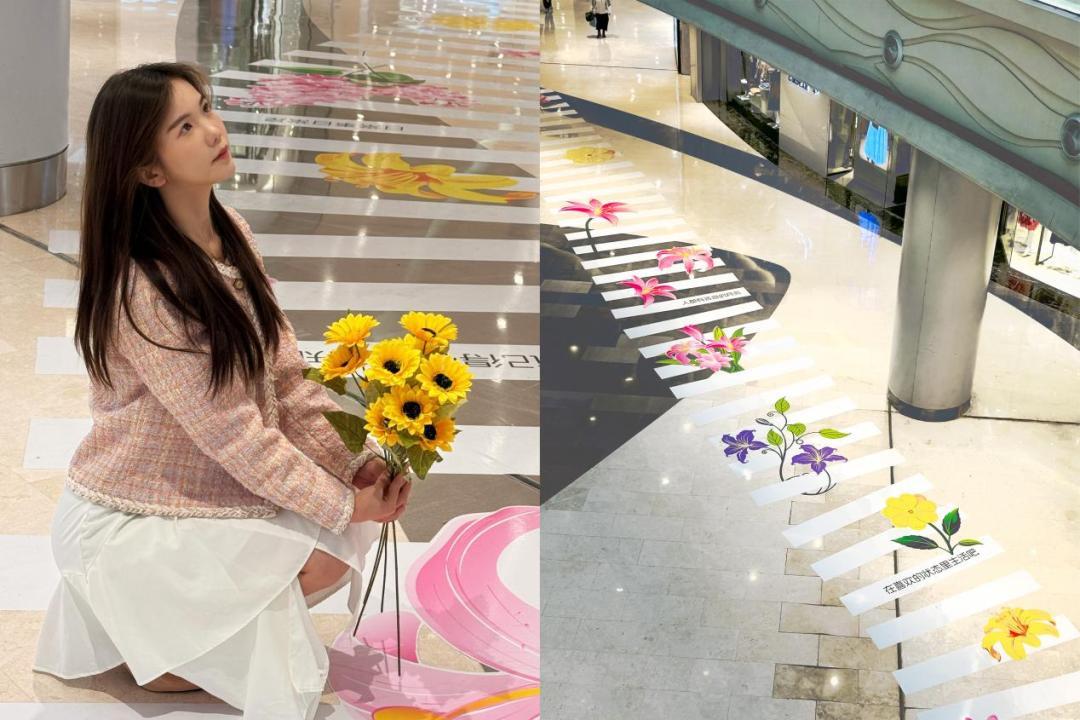 “花瀑电梯和繁花斑马线让人眼前一亮,不仅感受到了节日的仪式感,也让我以身为女性而骄傲。”正在拍照的朱女士如是说。