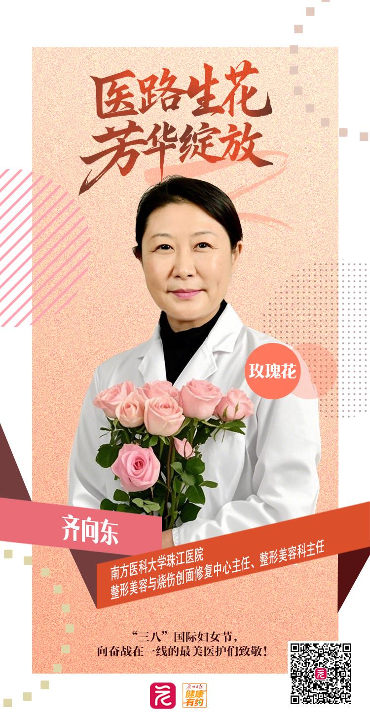 珠江医院整形美容中心的前台,时常摆放着玫瑰花束。齐向东快步经过时衣角带风,微颤的花瓣回应她利落的脚步,暗香浮动。她总是带着外科医生特有的风风火火,却又在见到患者的瞬间,将所有凌厉化作春风拂面。