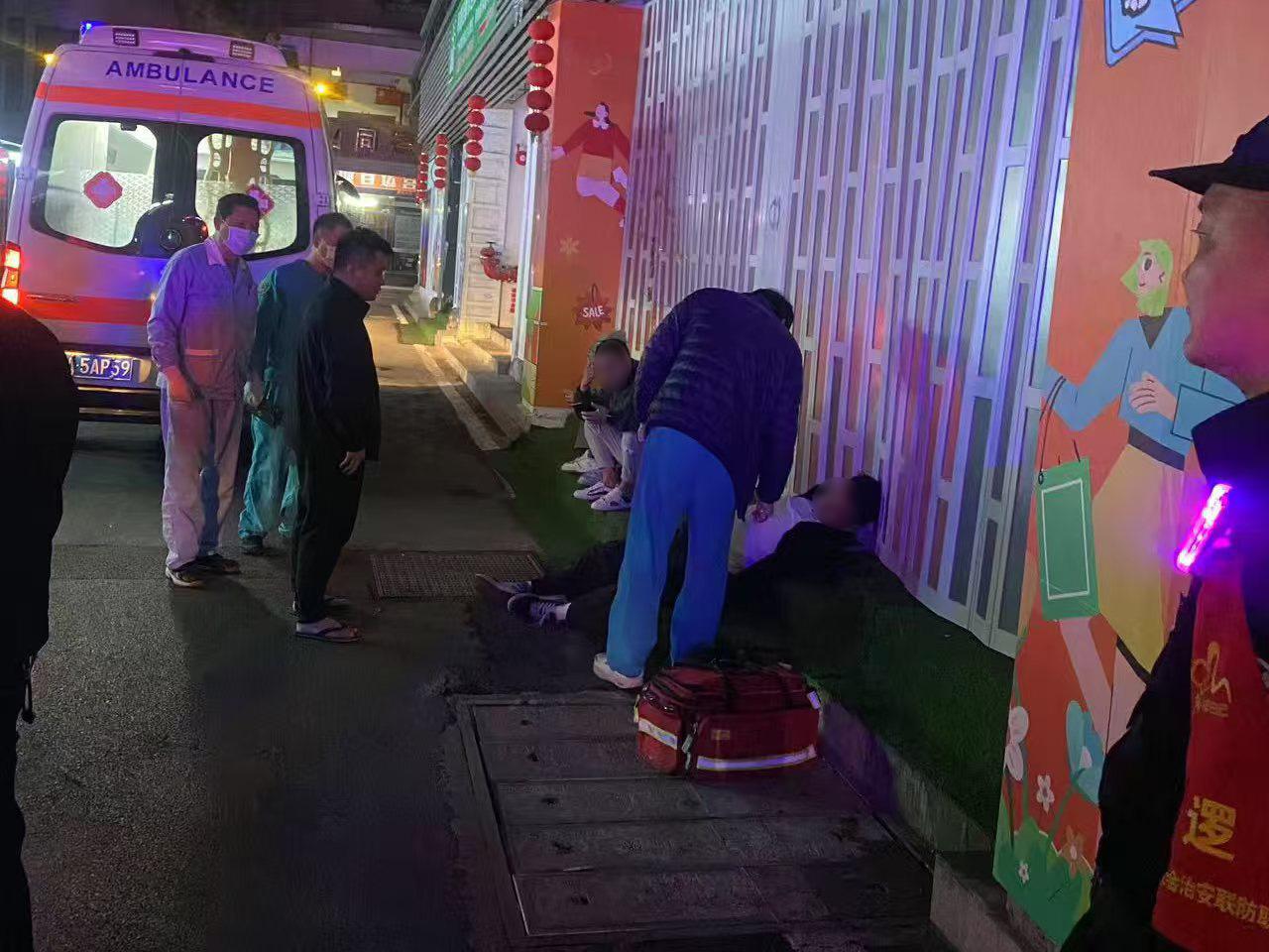 经检查,发现有一人倒地靠墙,表情痛苦,声称身体不太舒服。两名队员反应迅速,立即分别呼叫同德派出所和医院,详细汇报了现场情况。没过多久,民警和救护车相继赶到现场。民警将涉事双方人员分别带离,以便进一步调查处理此次事件;而救护车则迅速将受伤人员送往医院,进行及时的救治。经检查,该名受伤男子并无大碍,已和其余相关人员一起接受民警警示教育。