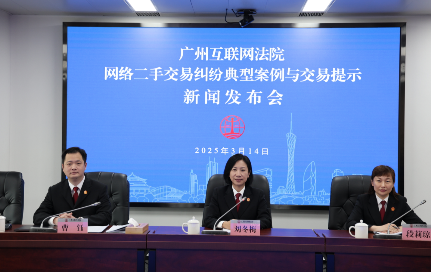 信息时报讯(记者 蔡晓素)3月14日上午,广州互联网法院召开“网络二手交易纠纷典型案例与交易提示”新闻发布会。发布会上,广州互联网法院分党组副书记、副院长刘冬梅对近年来涉及网络二手交易纠纷案件的审理情况、纠纷发生原因及交易提示进行了通报。综合审判三庭庭长曹钰发布了网络二手交易纠纷十大典型案例。