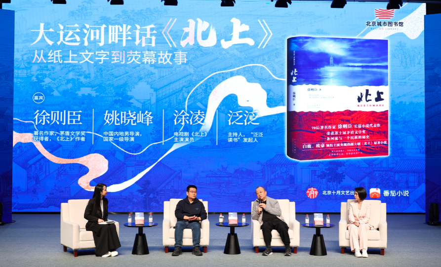 《北上》原著作者徐则臣、电视剧总导演姚晓峰、电视剧主演涂凌、主持人泛泛及广大读者、剧迷相聚一堂,深入探讨文学经典与影视的跨界交融、运河与人生的交织、运河精神与文化的传承与展望等话题。