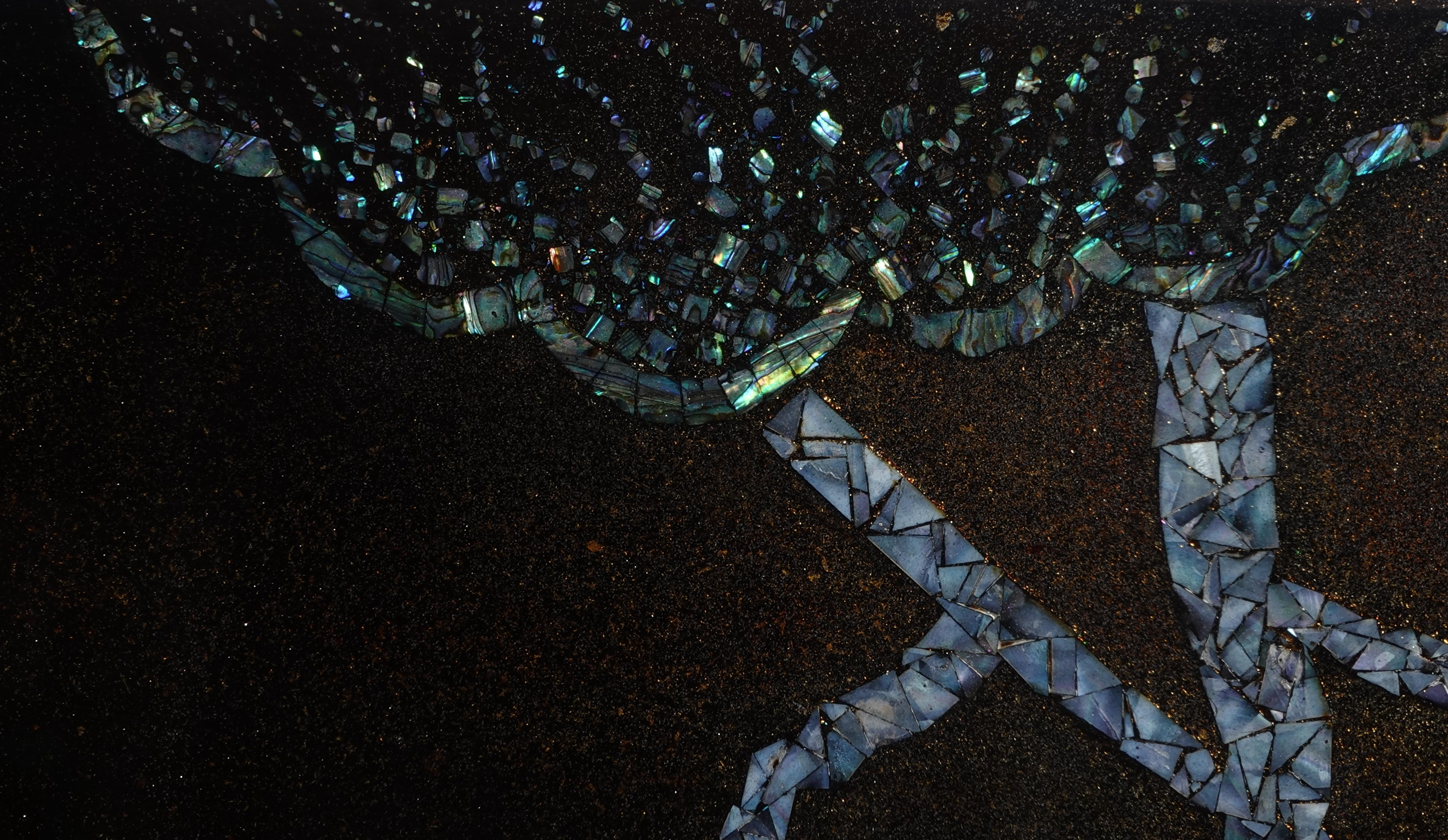 装饰画《对话》灵感源自闪电瞬间的爆发力,将仅 0.1毫米的螺钿薄片巧妙镶嵌于大漆基底之上。匠人们凭借精湛的手工技艺精心拼嵌出雷暴凌厉的肌理。当光线在其上流转,呈现出梦幻般的彩虹光芒。作品传承了中国传统的螺钿镶嵌工艺,体现出非遗元素在当代家居空间中的全新适应性。