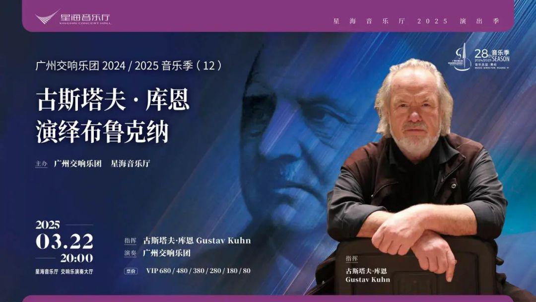 3月22日,古斯塔夫·库恩将首度亮相星海音乐厅,执棒广州交响乐团带来布鲁克纳的鸿篇巨作——近90分钟的C小调第八交响曲!