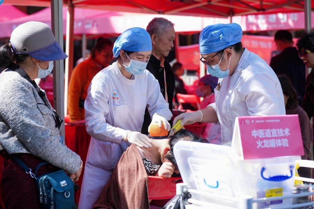 与此同时,在中医适宜技术体验区也排起了长队。这里提供了多种传统中医治疗方法的体验,包括雷火灸体验和火龙罐体验等,居民亲身体验这些传统的中医疗法后,纷纷表示感觉浑身轻松,深切感受到了中医的独特魅力。