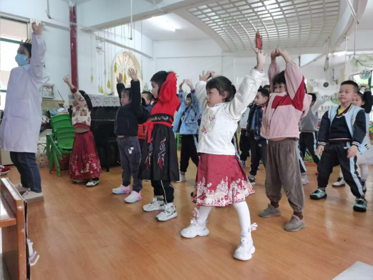 “预备,起!”随着口令响起,萌娃们在医师指导下,学起八段锦第一式“两手托天理三焦”。孩子们虽动作稚嫩,却学得有模有样,瞬间化身“功夫小达人”。现场欢声笑语不断,一张张泛着红晕的脸蛋上洋溢着新奇与自豪,萌娃们在一招一式间感受传统中医养生文化的独特魅力。