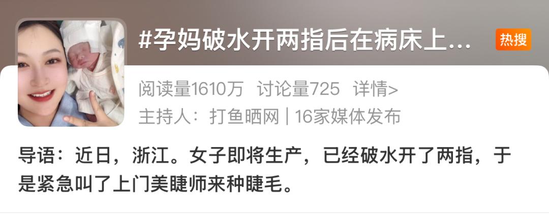近日,一位经产孕妇在临产时淡定找美睫师上门接种睫毛的新闻登上热搜,引发不少关注评论。有人说种睫毛会上瘾,种开了就停不下来,更有人表示自己想做“同款美妈”。