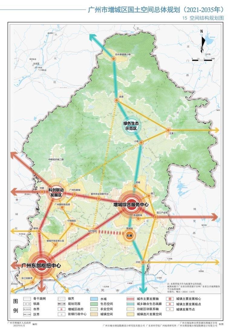 2015年,《增城市城市总体规划(2013-2020)优化提升》从空间上确立“中南部一体化,北部生态化”战略布局。空间整合荔城、增江、朱村、中新、新塘、永宁、仙村、石滩南部八个镇街,以增塘水库等生态绿核为纽带,推动产业、交通、设施三大系统协同共振。同时挖掘派潭、小楼、正果为主体的生态资源,推动北部旅游与现代农业融合,实现产业、交通、发展生态化。