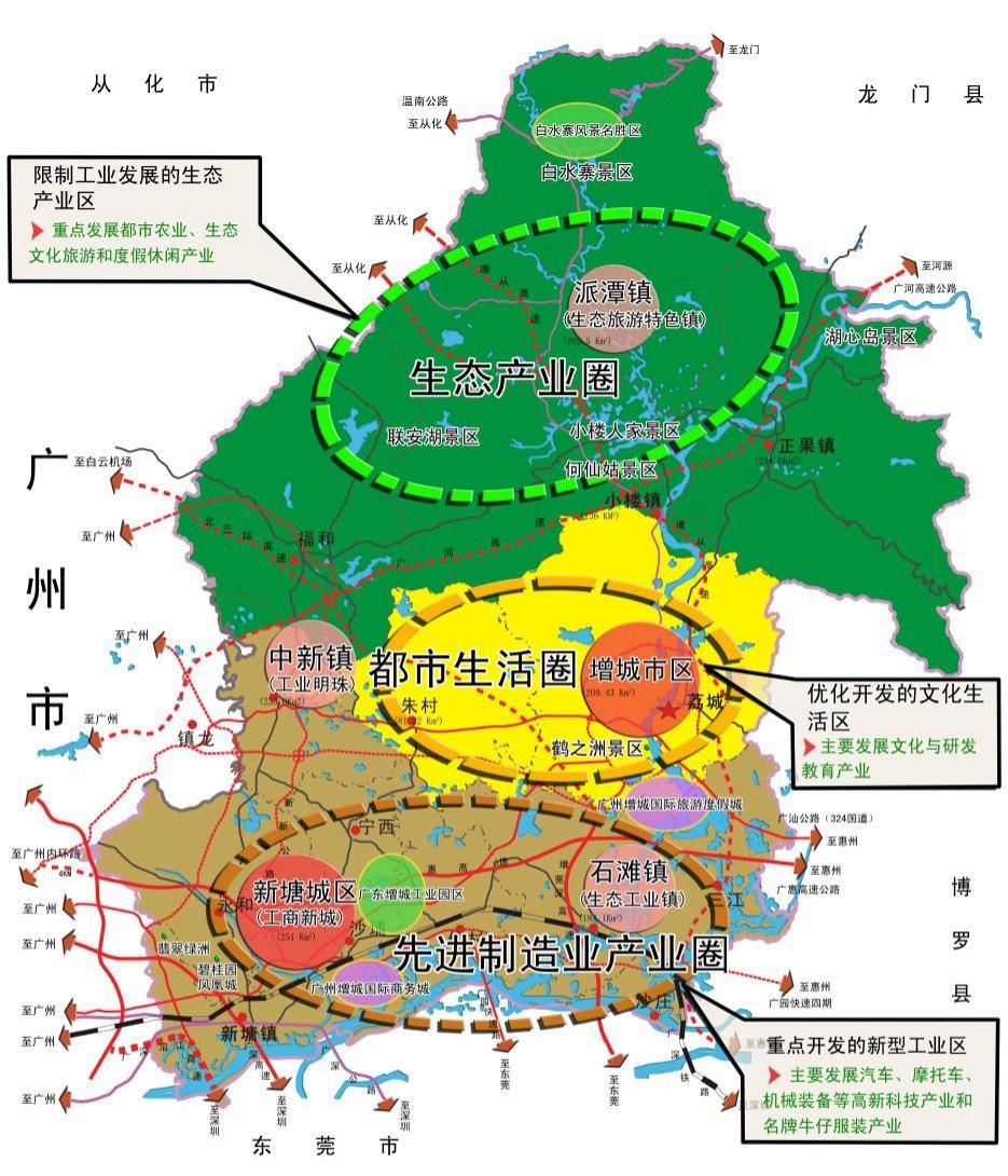 2008年,基于不同区域的资源环境承载能力、现有开发密度、社会经济人口布局等多元因素,增城区率先破局“三大主体功能区”战略,以南部新型工业区、中部文化生活区、北部生态产业区的差异化布局,开创全国县域经济创新发展范式。