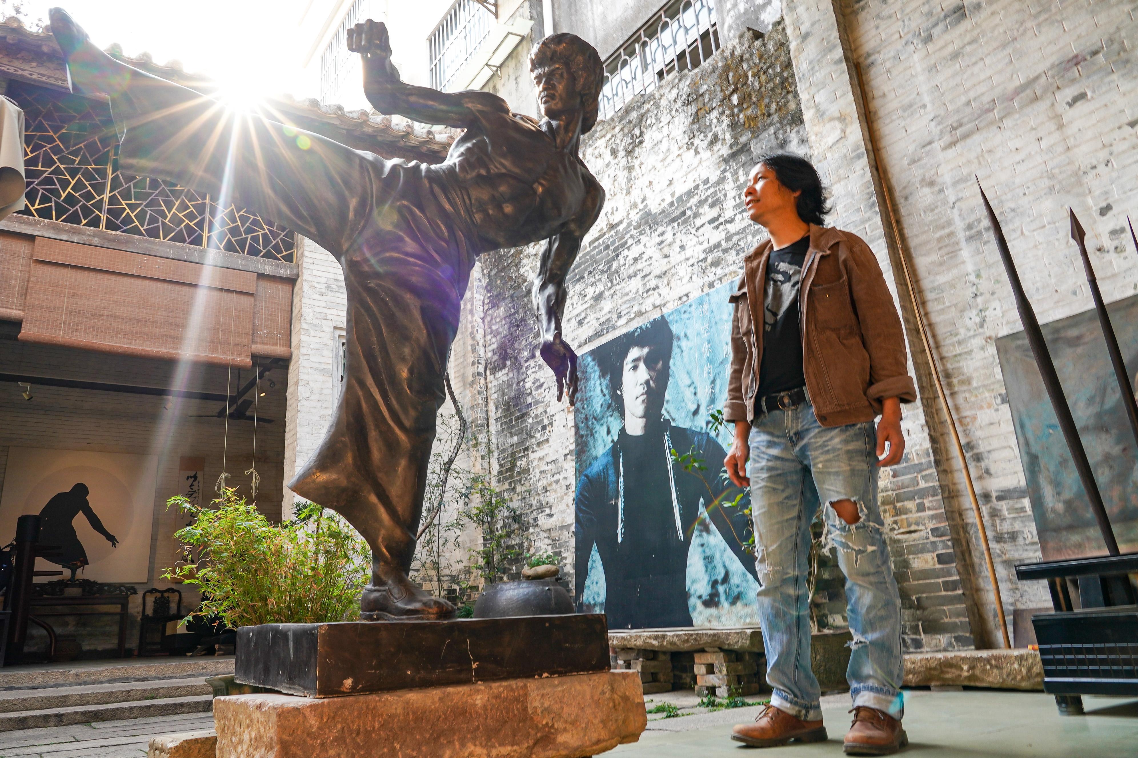 这是黄伟柱真正意义上的第一件圆雕作品。这个多少带着点偶然的举动,也让他一发不可收拾,走上了人物雕塑的道路。22年来,他自己也记不清究竟做过多少个“李小龙”。这个用硬汉形象改变了许多人对华人刻板看法的武术家,成了黄伟柱身上最具标志性的符号。