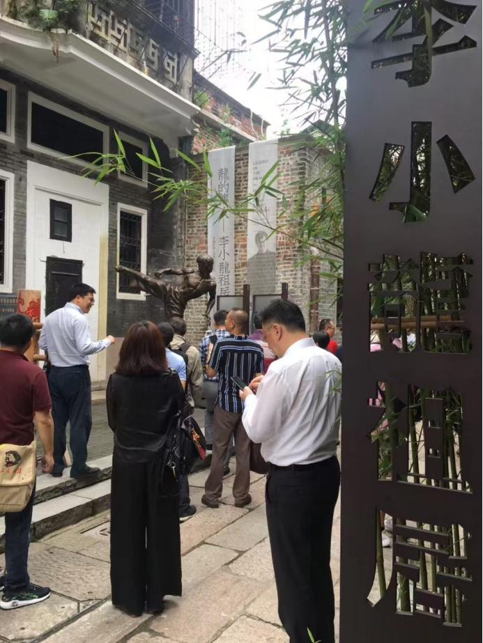 广州永庆坊内,游客们在李小龙雕像前打卡