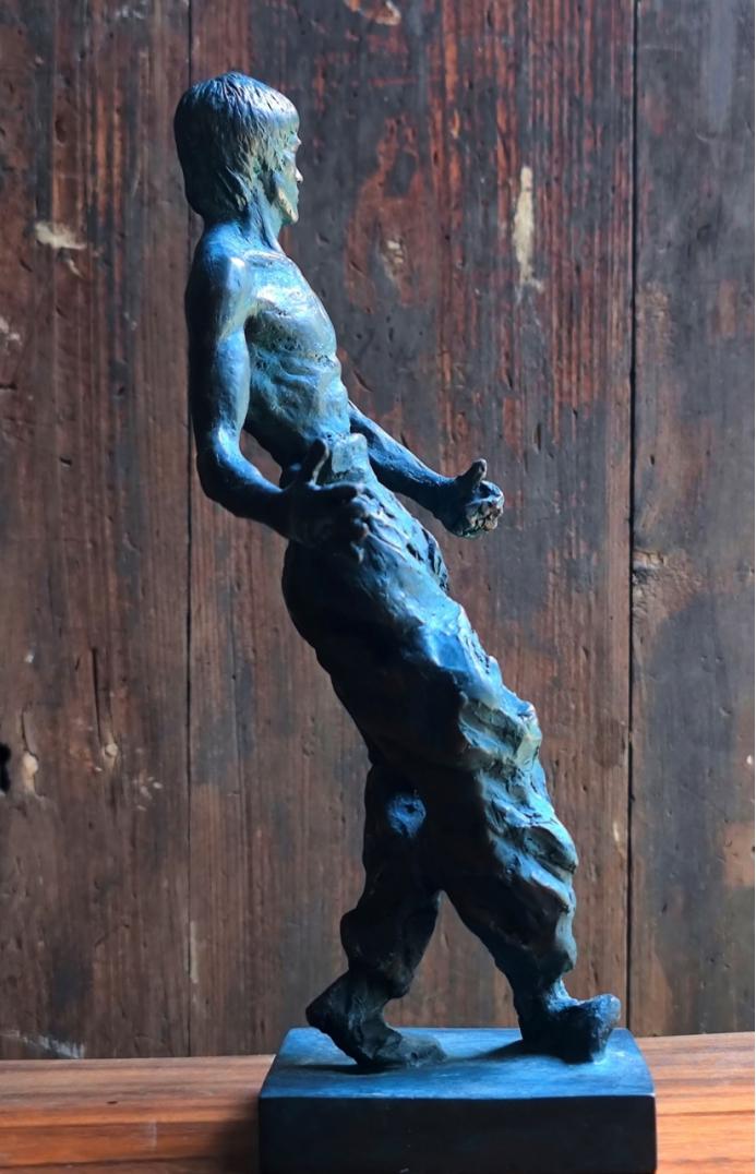 黄伟柱特别执着于在固有的体式上赋予作品以灵性,强调感受创作对象的生命历程。他说,创作很多时候是“心力交瘁”的取舍过程。好的作品,除了忠于人物,还需关注所处年代气质特征,升华人物身上的“历史感”。比如著名的香港音乐人黄家驹,虽然和李小龙一样英年早逝,但短暂的生命历程丝毫未影响他们身后的光芒四射,而且随着时间推移愈加显现出历久弥新的价值。作为深受其音乐影响的一代,黄伟柱也得益于其音乐力量源源不断地输入。在雕塑作品《光辉岁月》中,黄家驹左手扶吉他、右手振臂高呼、衣衫随风飘扬、头颅高昂仰望远方。这是艺术家对黄家驹多年认知的个人感受,而这座雕塑也反哺给他以温暖和力量。