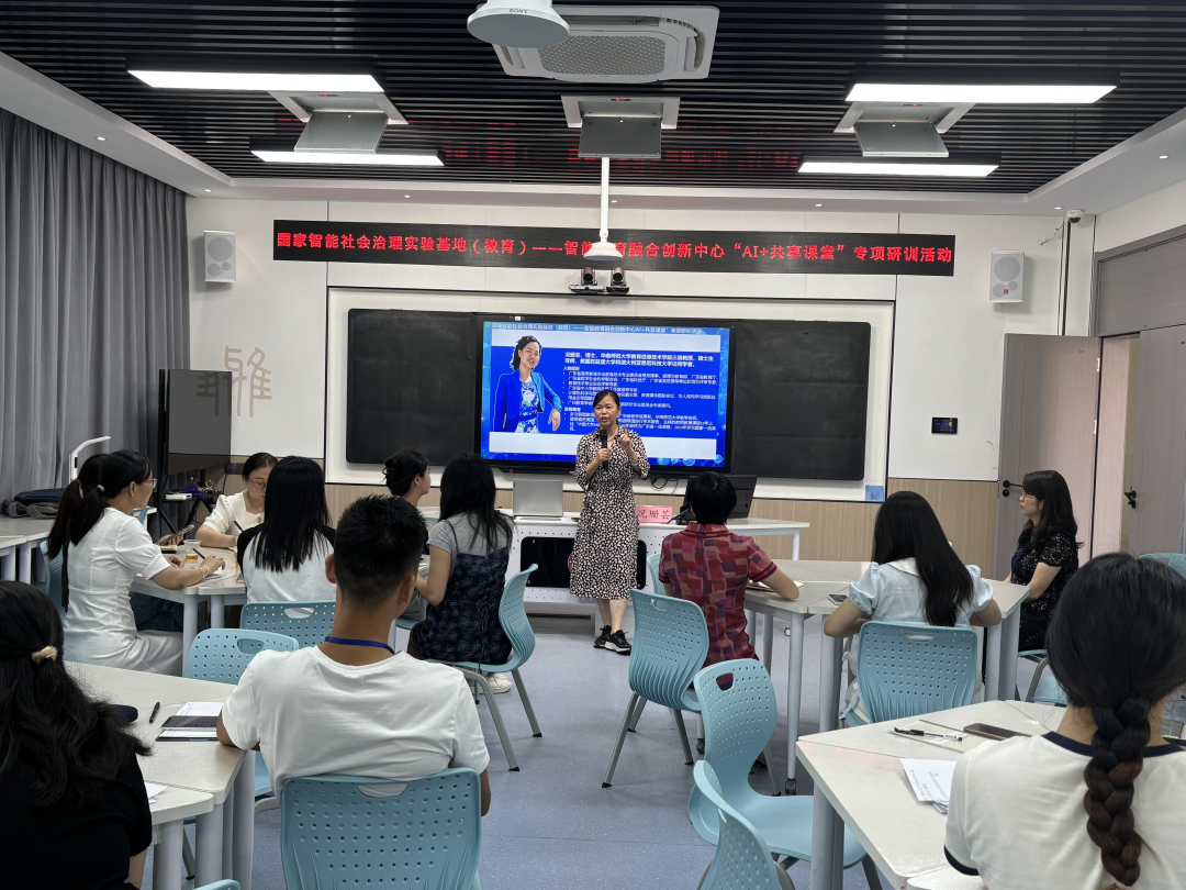 黄雪晶介绍,在教师培训方面,学校启动了“AI+教师成长”计划,通过定期举办AI技术应用工作坊、在线课程学习、专家讲座等多种形式,对教师进行全方位、多层次的培训。培训内容涵盖AI基础知识、智能教学工具使用、数据分析与学情诊断等多个方面。