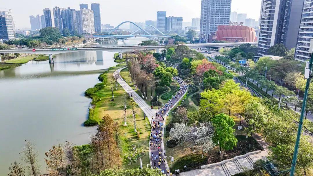 本次活动路线设计全面升级,以沉浸式体验城市风貌为核心,欢乐跑和亲子跑线路终点分设在不同位置。赛道路线充分展现了南沙街道的生态底色与城市建设的丰厚成果。欢乐组从蕉门河活力广场出发,途经垂钓平台,蕉西水闸,最终折返于南沙体育馆。亲子组则从蕉西水闸分岔至蕉西路绿道,全程路线环绕蕉门河两岸,最后到达滨水广场冲破终点,完成比赛。