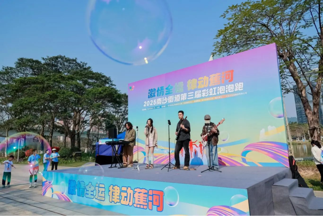 南沙街道办事处主要领导在致辞中表示,第三届彩虹泡泡跑以“运动之美映衬生态之美、群众之乐彰显发展之实”,是街道深化体旅融合、推动全民健身的创新实践。活动依托蕉门河生态资源,串联青年活力与城市发展,展现南沙“青年城”蓬勃朝气。以“激情全运,律动蕉河”为主题,联动全运会热潮,激发群众参与热情,在碧水蓝天间跑出健康生活新方式,为南沙高质量发展注入澎湃动能,生动诠释了体育事业与城市发展的同频共振。