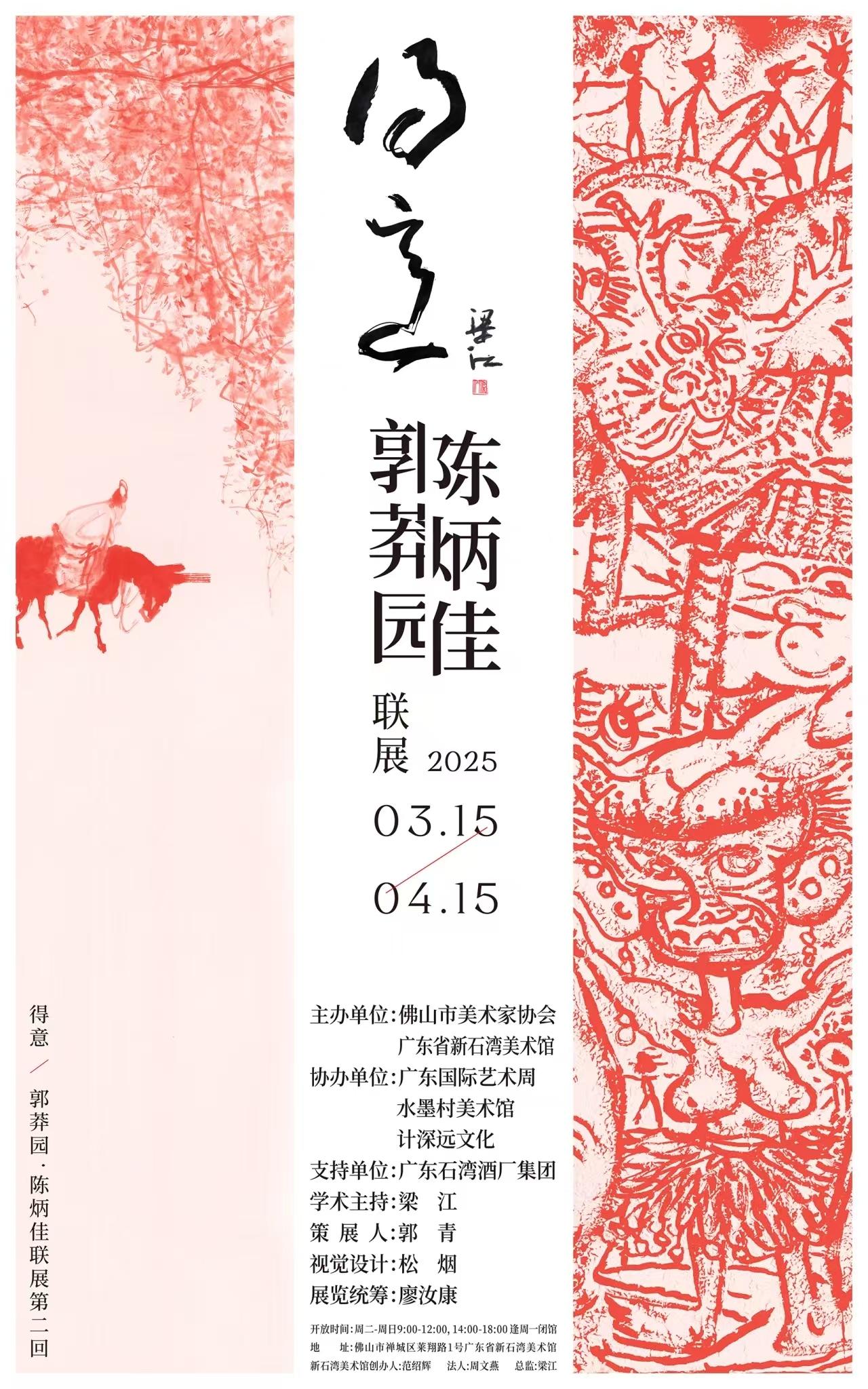 本次展览由佛山市美术家协会,广东省新石湾美术馆联合主办,广东国际艺术周、水墨村美术馆、计深远文化协办,支持单位为广东石湾酒厂集团。展览由中国美术馆研究员,原中国美术馆副馆长、中国艺术研究院美术研究所所长梁江担任学术主持。
