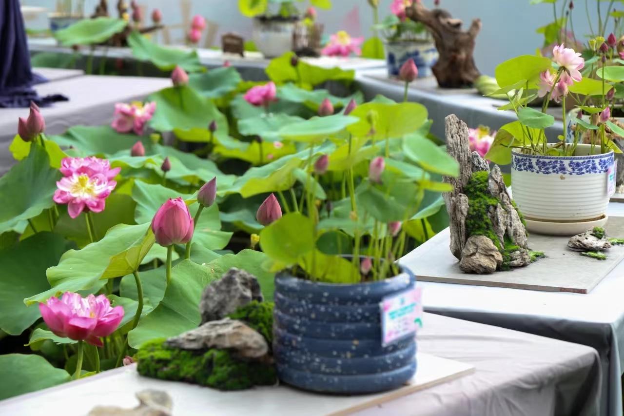 往届荷花(碗莲)栽培比赛作品展。通讯员供图