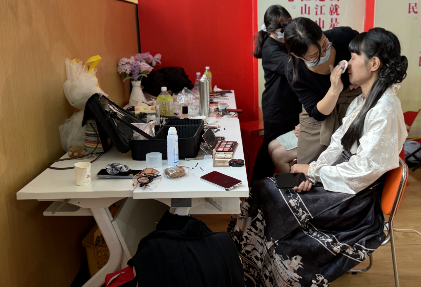 活动首日,党群志愿者早早协助摄影团队布置好拍摄背景,调试灯光设备,准备各式服装、化妆工具和拍照道具,在社区党群活动中心二楼活动室搭起简易摄影棚,为前来的居民打造专属的“精致时刻”。