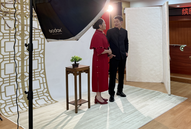 换好服装,化好妆容,拍摄便开始。摄影师根据不同的场景细致入微地引导每位居民摆造型,从微笑的弧度到手部摆放位置,身体倾斜角度,力求捕捉每位居民独特的气质与风采,让每一张照片都成为经典。