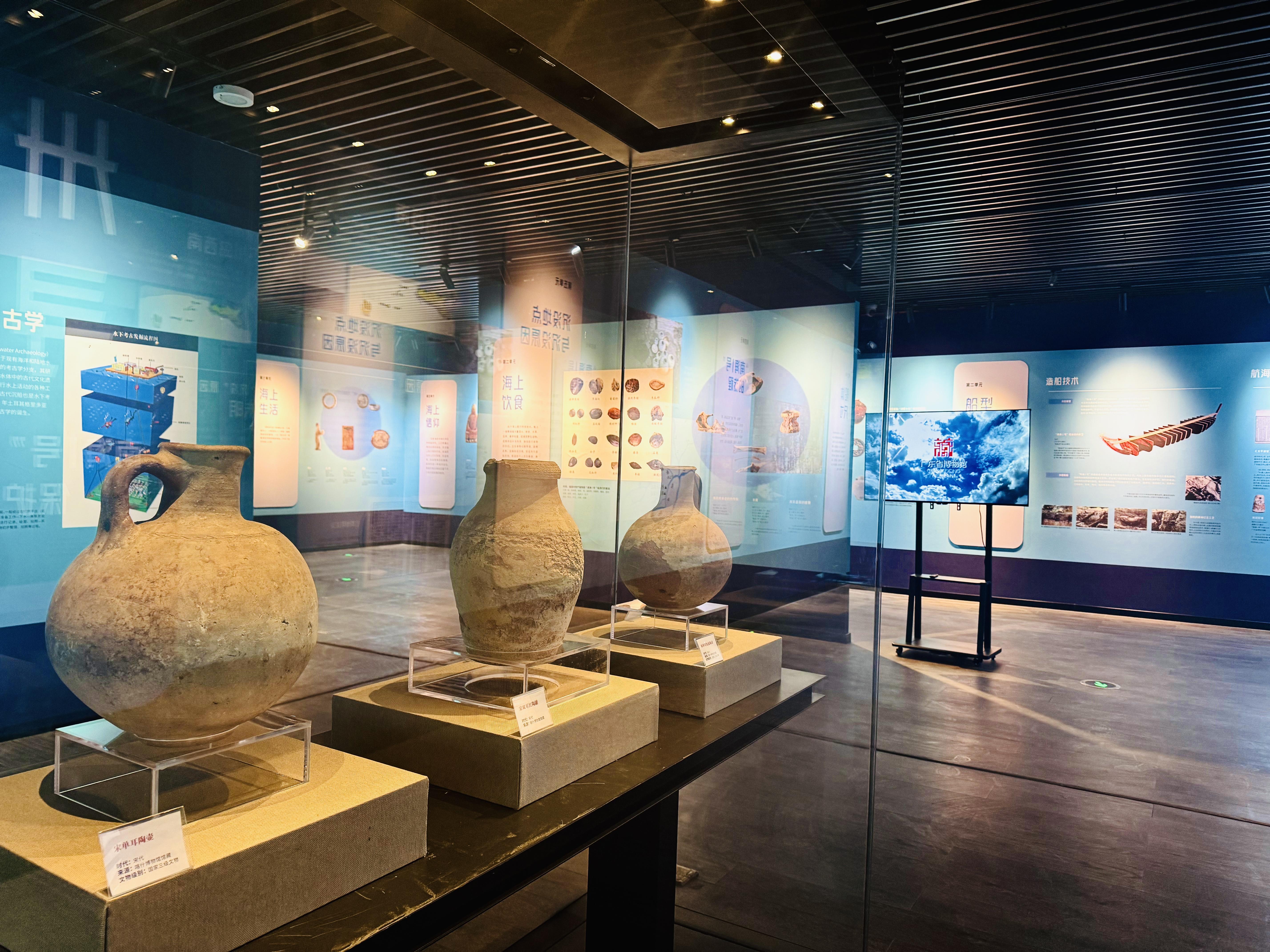 展览以“南海Ⅰ号”图板和多媒体展示为主要载体,并结合部分喀什当地文化遗存,通过“南宋中兴”“万贯珍品”“万里行舟”“船沉南海”“卅载寻踪”五部分,系统梳理“南海Ⅰ号”所处的历史背景、贸易网络与船员生活,由点及面综合呈现南宋时期中国海上丝绸之路的繁荣史实与海洋贸易的传奇画卷。通过沉船的发现以及沉船考古实录高清文物图片与考古现场影像,讲述今人保护丝绸之路文化遗产的努力,让观众得以近距离感知海洋文明。