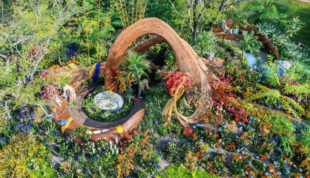 “大师园”集结中国、英国、南非、新加坡、泰国、美国等国际获奖设计师团队,与大湾区知名企业联袂打造的7个风格各异的主题花园。《归园·万物生境》以生态修复为主题,展现生态和谐与重生力量;《深湾叠翠》演绎山海城生态演变;《第一滴雨》以水循环隐喻生命轮回;《太阳之舞》将天体轨迹转化为空间诗意;《超链密码花园》以深圳公园百年为脉络解码链接新时代的无限可能。南非团队以竹编蒴果装置与漂浮草甸打造的《生命的轮廓》和新加坡团队采用环保材料探索建筑与自然共生模式的《绿色未来》。这些作品以植物为语言,共同诠释了人与自然可持续发展的全球智慧,为湾区生态建设提供创新范本。