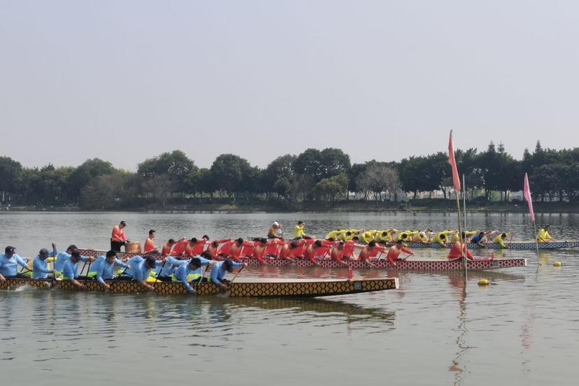 “加油!加油!加油!”伴随着一声声呐喊,清河同心队、清河同德队、清河和谐队三支龙舟队伍向着终点进发,三龙并驾齐驱,船头距终点仅半尺之遥,胜负悬于瞬息之间。